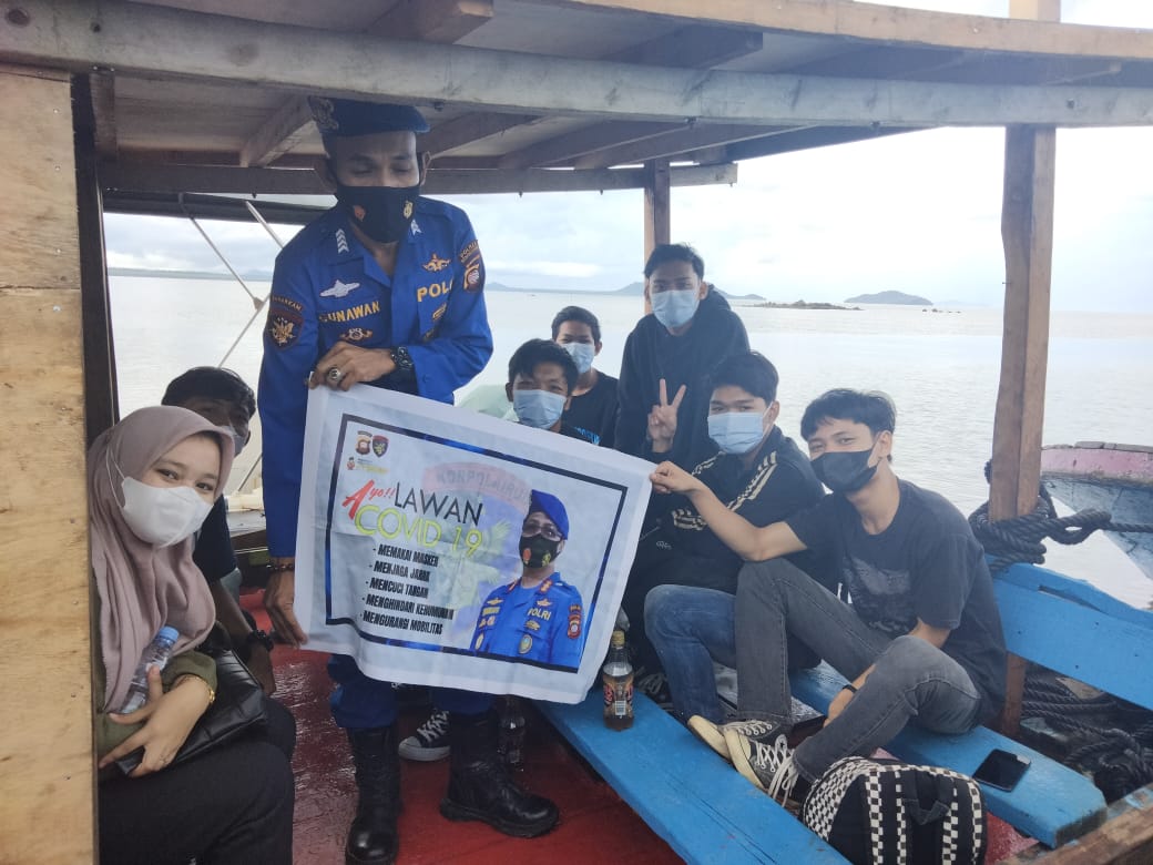 Sabtu 12/06/2021 anggota Sat Pol air melakukan giat himbauan kepada masyarakat terkhusus warga yang beraktifitas didermaga Samudra indah dalam hal ini penumpang kapal dan ABK yang akan berangkat melewati Dermaga Samudra indah dusun Tanjung gundul Desa karimunting.