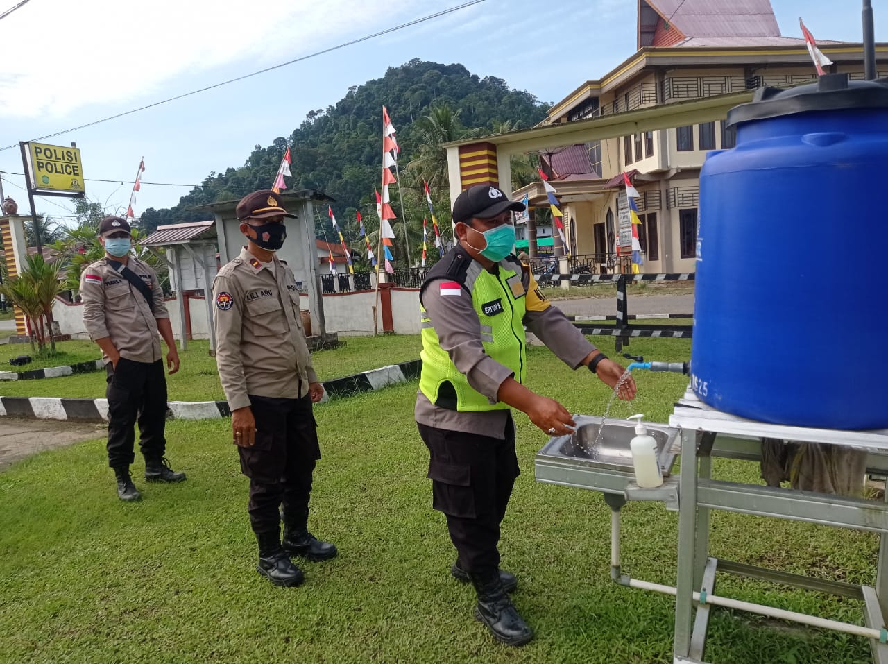 Polres Bengkayang – Polsek Samalantan. Tidak ingin ada penyebaran virus corona dikantornya, Polsek Samalantan Polres Bengkayang terapkan prokes (protokol kesehatan) covid 19 secara ketat kepada siapa saja yang akan memasuki markas komandonya.