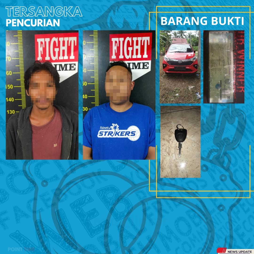 ” Keduanya berhasil ditangkap atas kerjasama Jatarans Polres Kubu Raya bersama Jatanras Polresta Pontianak Kota berdasarkan laporan Korban Sunardi (29) warga Desa Kapur atas peristiwa pencurian satu unit Mobil Minibus Daihatsu Sigra-R Deluxe KB 1715 MH miliknya ke Polsek Sungai Raya pada Senin 9 Januari 2022 jam 02.30 Wib pagi untuk ditindak lanjuti. Korban mengalami kerugian sebesar Rp. 129.000.000,- (seratus dua puluh sembilan juta rupiah), terang Ade, Selasa 24/1/23.