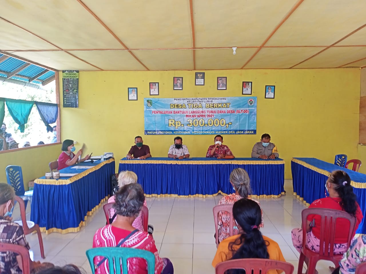 Disampaikan Kapolsek, penyaluran Bantuan Langsung Tunai ( BLT-DD ) dari Dana Desa untuk masyarakat Tiga Berkat dilaksanakan di Aula Kantor Desa Tiga Berkat Karya dengan Penerima BLT sebanyak 123 KK, deng Perkeluarga mendapatkan uang tunai sebesar Rp.300.000.(Tiga Ratus Ribu Rupiah).