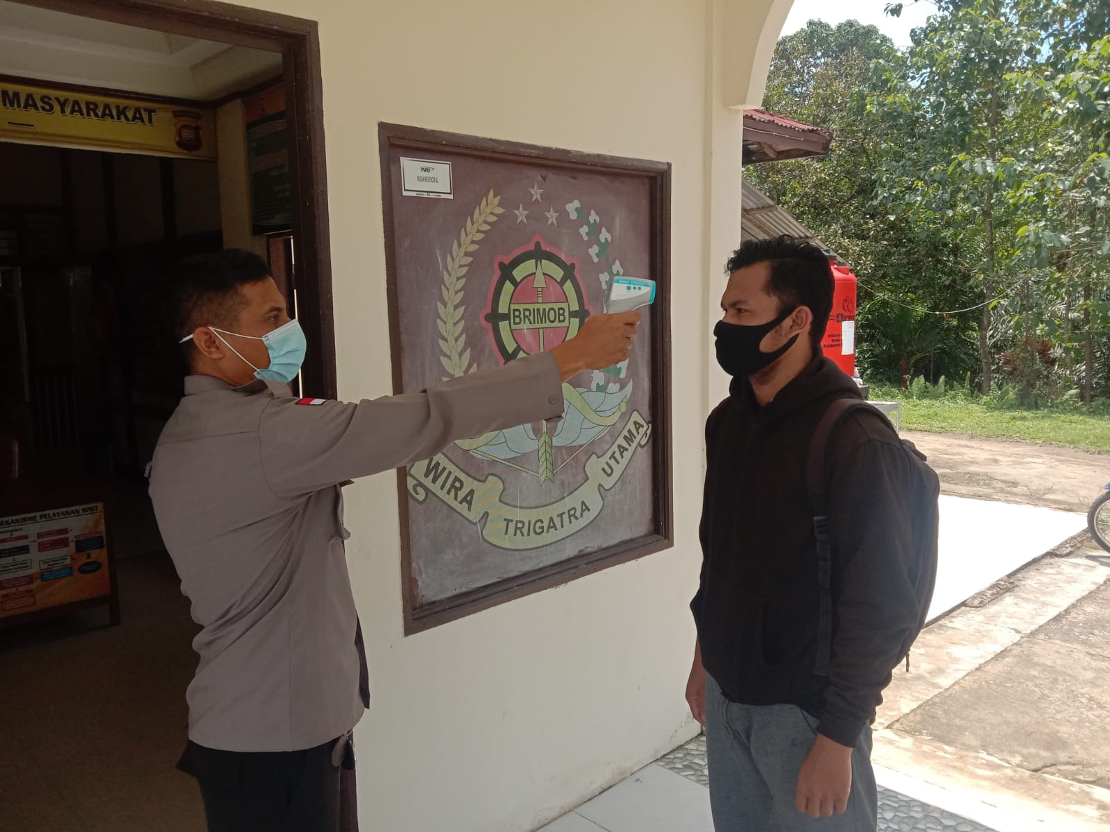 Polres Bengkayang. Penerapan protokol kesehatan Covid19 di mako Polsek Ledo sebagai langkah awal mendeteksi dan pencegahan penyebaran Covid-19. Senin/13/September/2021.