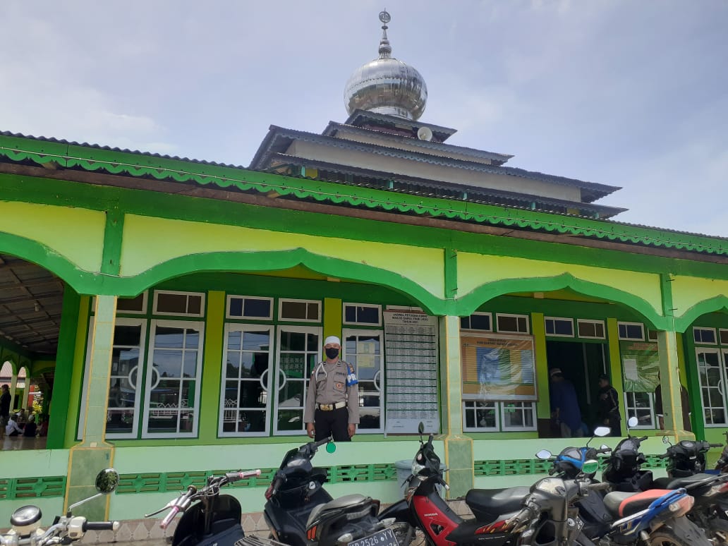Anggota SPKT I Polsek Ledo melakukan pengamanan Solat Jumat di Mesjid Darul Fiqri Wilkum Polsek Ledo. Jumat/12/11/2021.