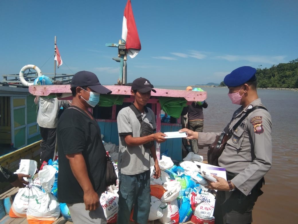 Kegiatan pengawasan prokes Covid-19 menyasar kepada warga masyarakat pesisir yang sedang melakukan aktivitas serta kepada penumpang umum kapal motor yang menuju ke Pulau Lemukutan.