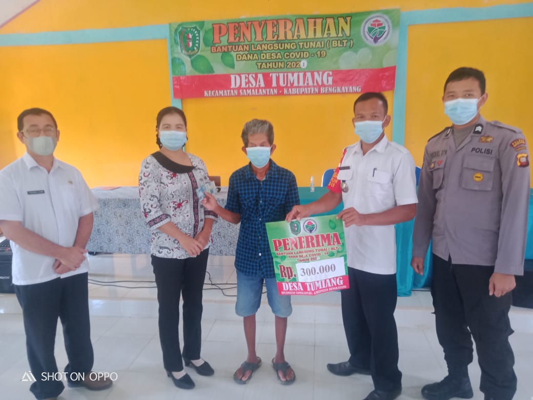 Rabu tanggal 30 Juni 2021 pukul 12.30 wib s.d selesai Bhabinkamtibmas Desa Tumiang Briptu Yehezkiel.T menghadiri kegiatan Penyaluran BLT DD Tahap 1 Salur ke – 3 Desa Tumiang Tahun 2021  Kec. Samalantan Kab. Bengkayang.