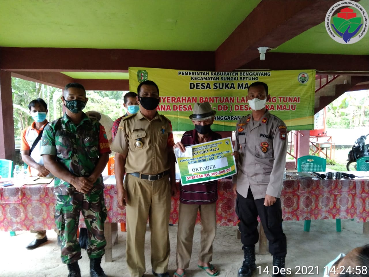 Selasa tanggal 14 Desember 2021 sekira pukul 09.00 s/d 14.00 Wib bertempat Gedung Perpustakaan Desa Suka Maju Kec. Sungai Betung Kab. Bengkayang telah dilaksanakan kegiatan Penyerahan Bantuan Langsung Tunai Dana Desa ( BLT – DD ) Desa Suka Maju Bulan Oktober, November, dan Desember Tahun Anggaran 2021.
