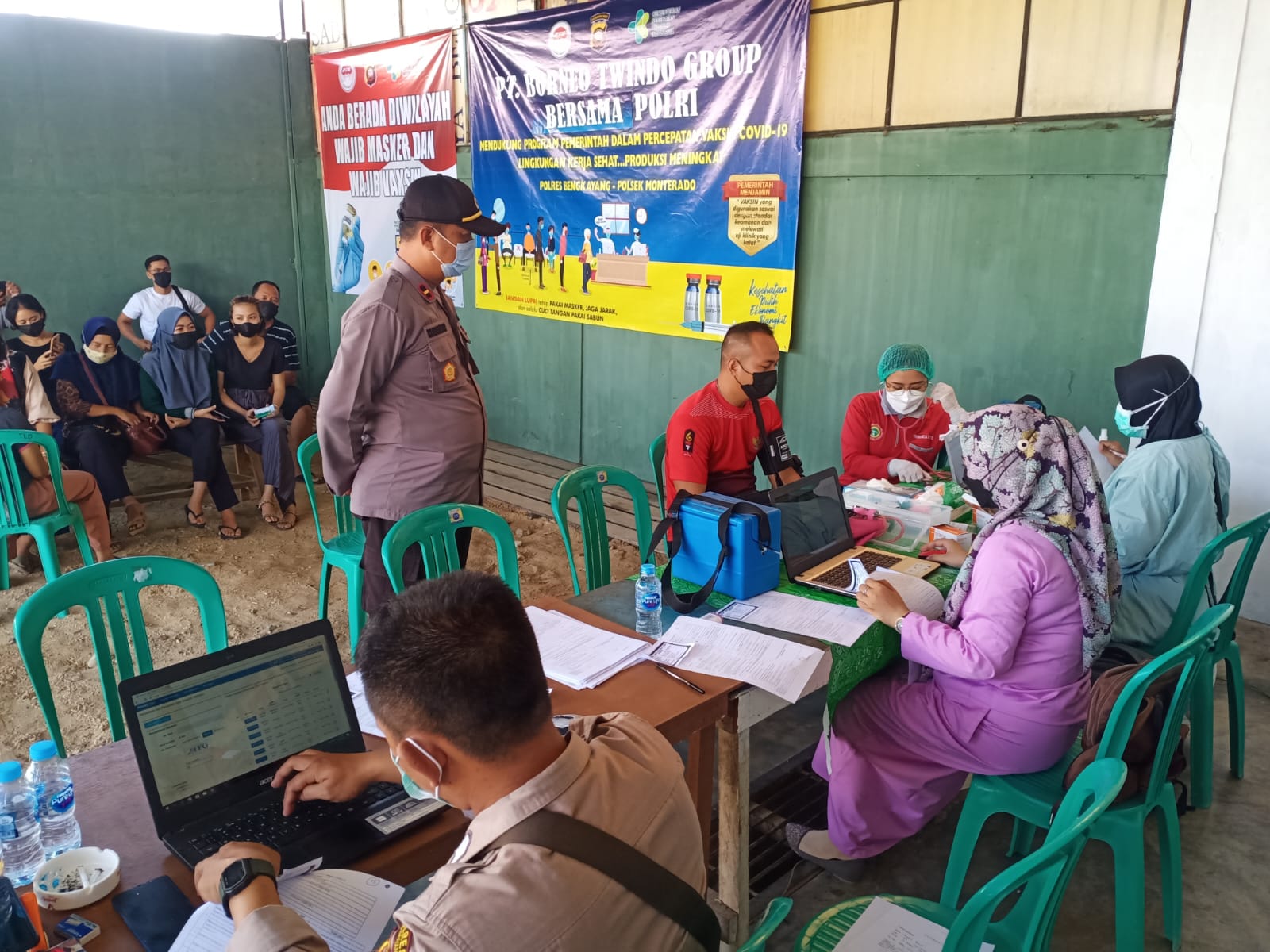 Polres Bengkayang, Polsek Monterado-Gerai Vaksinasi Presisi Polsek Monterado Polres Bengkayang kembali digelar di Desa Gerantung Kecamatan Monterado tepatnya di Gedung Kantor PT. Borneo Twindo Group Sabtu (30/10/2021).