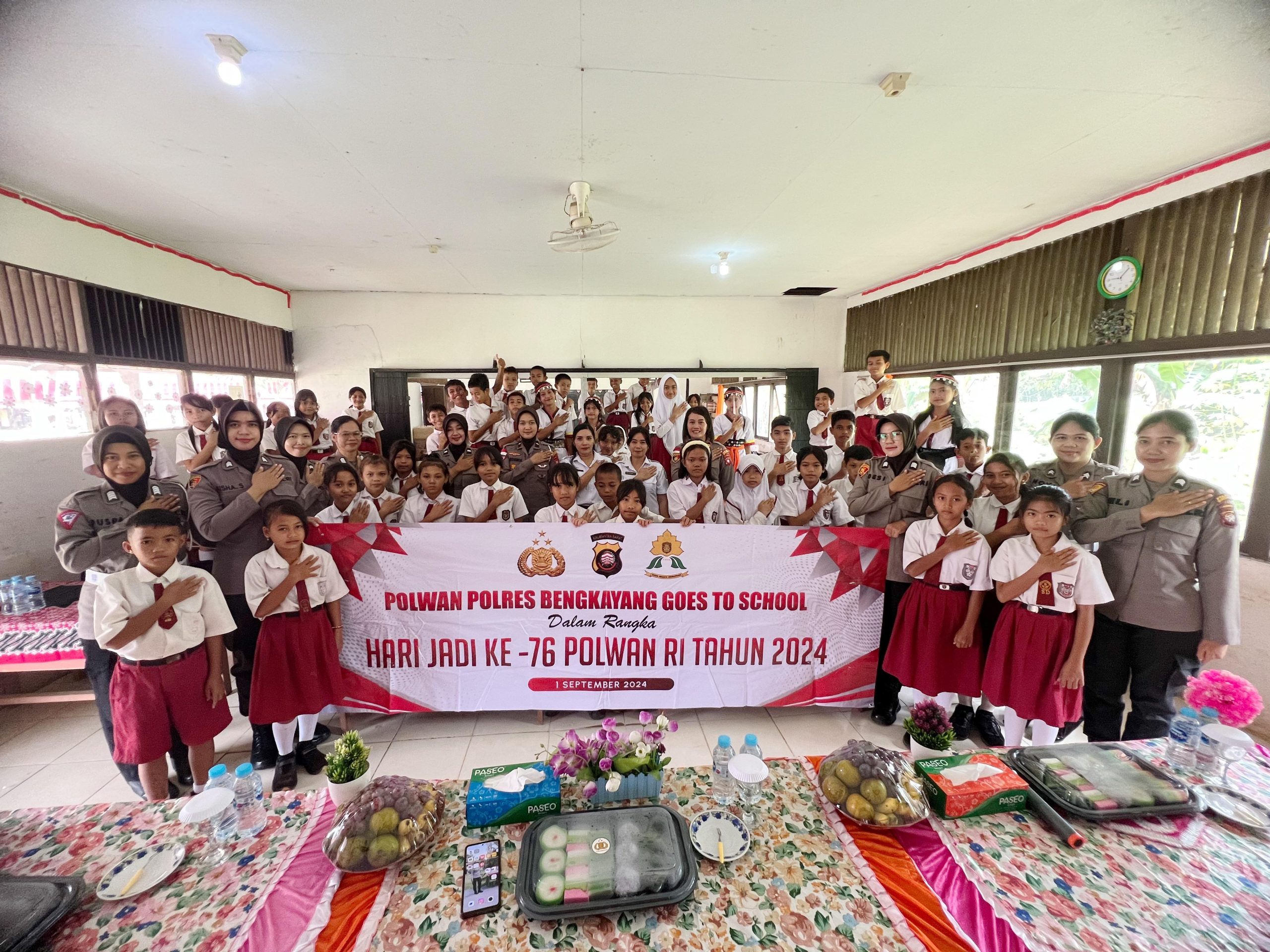 Memperingati hari jadinya yang ke-76, Polwan Polres Bengkayang melaksanakan kegiatan Polwan Goes To School ( PGTS ) di SD N 1 Ketiat Kecamatan Sungai Betung, Rabu (28/08/2024).