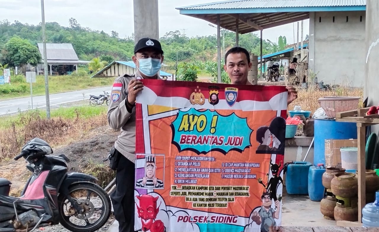Personel Polsek Siding Polres Bengkayang Polda Kalbar beri himbaun masyarakat tentang stop Praktek Judi di wilayah kecamatan Siding. Rabu (20/12/22)
