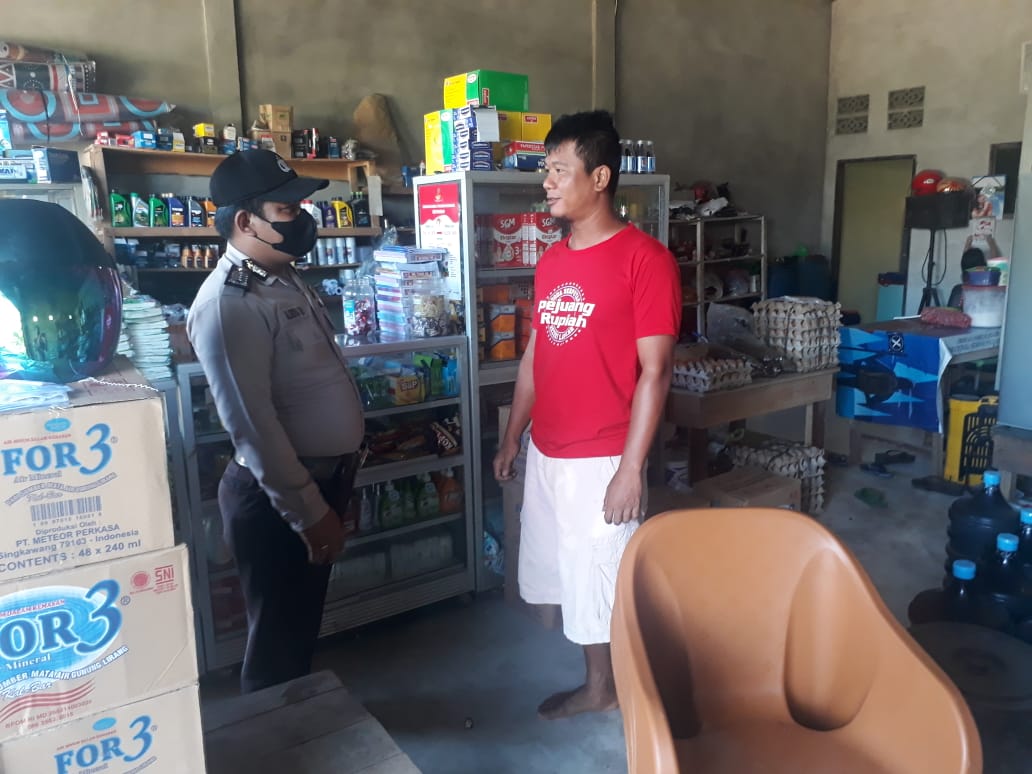 Tampak saat petugas piket SPKT II Polsek Monterado Bripka Rio melakukan tatap muka dan dialogis di sebuah warung milik Sdr. Niko warga Desa Monterado.