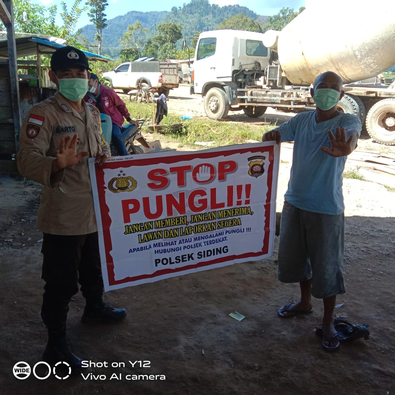 Personel Polsek Siding Polres Bengkayang Polda Kalbar tetap menghimbau baik kepada warga selalu disiplin protap kesehatan dalam mencegah Covid-19.