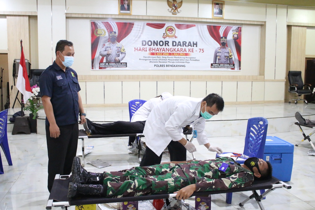 Wakapolres Bengkayang Kompol Amin Siddiq, SH mengatakan bahwa kegiatan donor darah ini merupakan salah satu kegiatan dalam rangka memperingati Hari Bhayangkara Ke-75.