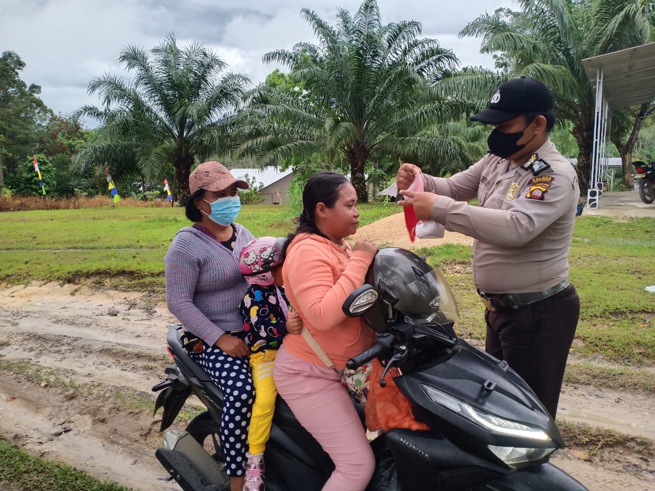 “Tetap kita terapkan Protokol Kesehatan 5 M guna mencegah penularan Covid19”, ucap Bripka Albertus Rio.