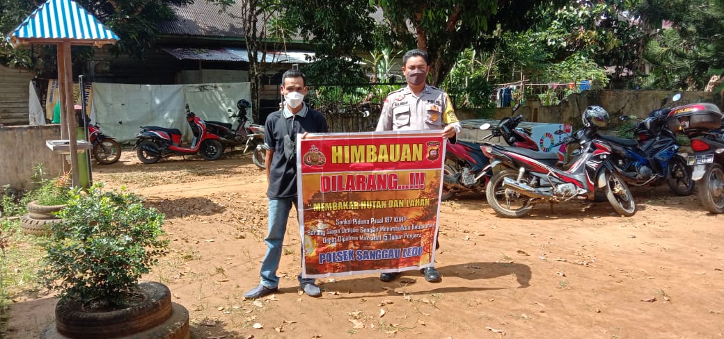 Polsek Sanggau Ledo, Polres Bengkayang Polda Kalimantan Barat melaksanakan sosialisasi Stop Karhutla hal ini disampaikan ke warga langsung dengan mendatangi rumah berupa Patroli Dialogis,