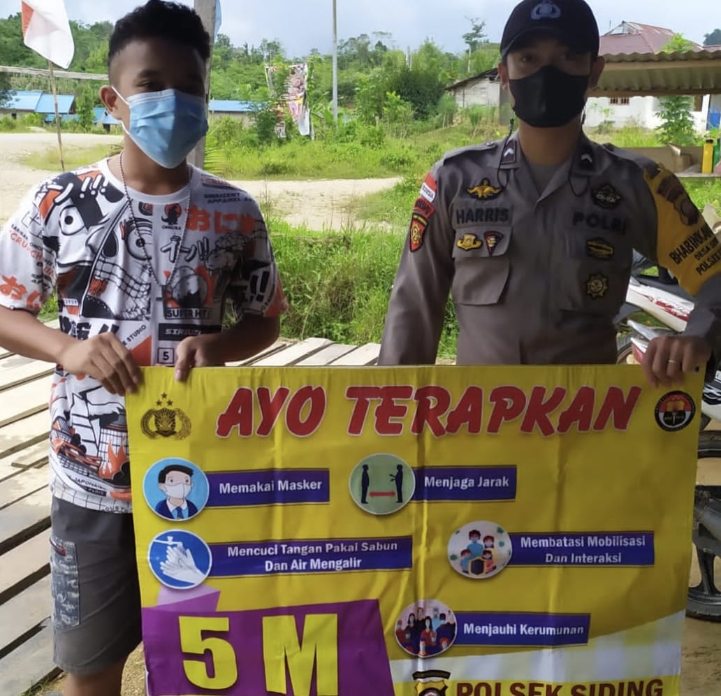 Sementara itu Kapolsek Siding Ipda Bambang Rudiyanto, menjelaskan,” seluruh Personil Polsek Siding terlebih Bhabinkamtibmas selaku pembina Kamtibmas didesa binaan tentunya berperan aktif serta tidak bosan memberikan imbauan serta mendisiplinkan warga dalam menanggulangi penyebaran virus covid-19 yaitu mengedepankan protokol Kesehatan dengan cara masyarakat agar selalu disiplin Protokol Kesehatan seperti menerapkan 5M menggunakan Masker, menjaga jarak, mencuci tangan, Menghindari Kerumunan dan Membatasi Mobilitas.” jelasnya “.