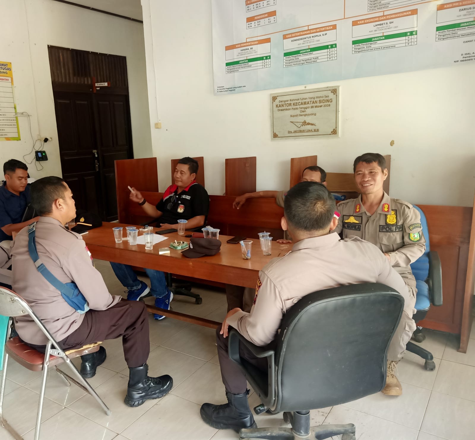 Senantiasa menjunjung jiwa netralitas, PPK dan Panwascam agar komunikasi dan informasikan ke Polsek Siding berkaitan kerawanan situasi Pemilu sehingga kedepannya dapat mengambil langkah upaya pencegahan dan penanganannya secara cepat dan tepat,” pesan Kapolsek.