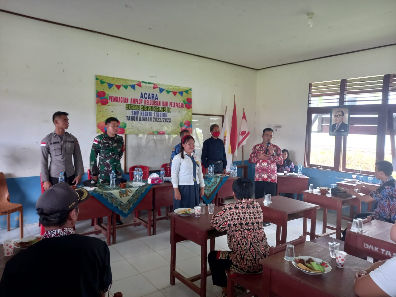 Bertempat di gedung SMPN 01 siding kegiatan pelepasan dan pembagian amplop kelulusan siswa/siswi SMPN 01 siding kelas IX tahun ajaran 2022/2023