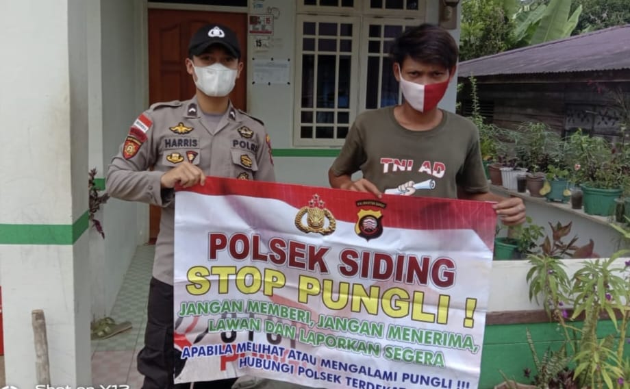 Komitmen lingkungan kerja wilayah hukum Polsek Siding Polres Bengkayang Polda Kalbar dalam memberikan pelayanan publik berkomitmen berantas Pungutan Liar, sebagai Bhabinkamtibmas lakukan himbaun Stop Pungli, Himbaun dilakukan pada saat door to door Sytem/sambang desa sebagai Bhabinkamtibmas Bripda Daniel Harris