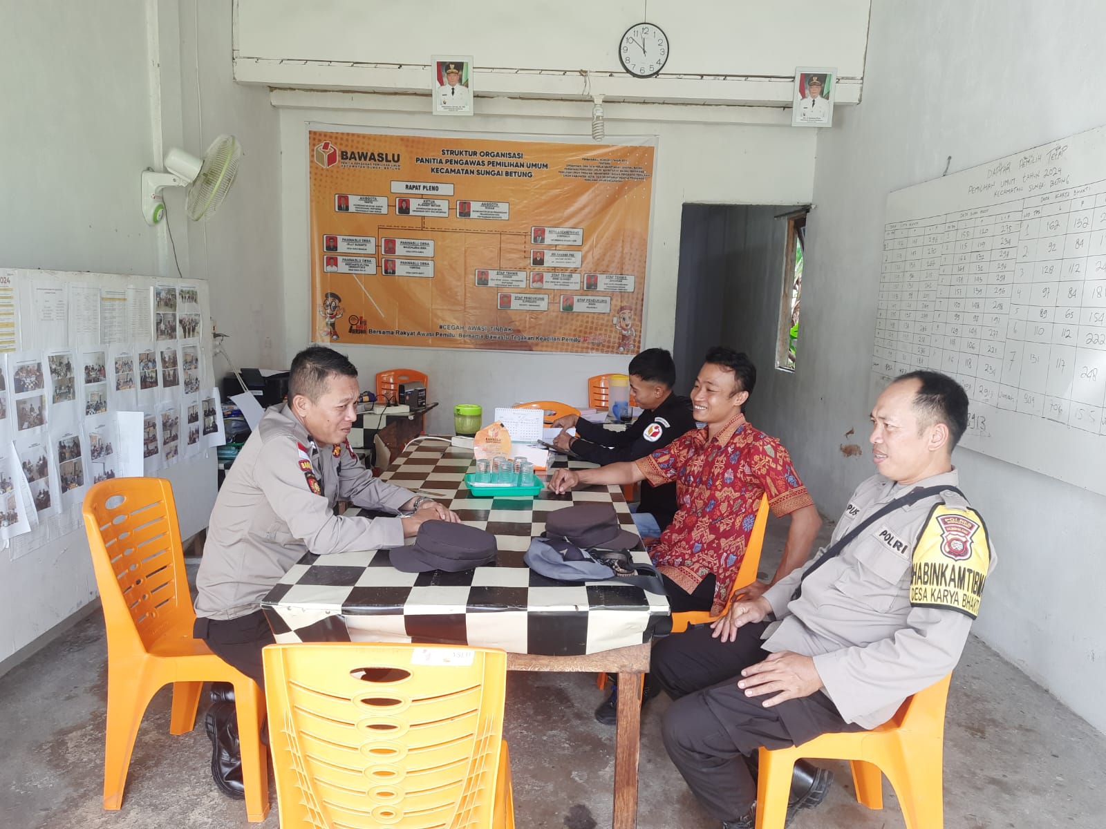 Cipta kondisi jelang Pemilu 2024, Polsek Sungai Betung rutin laksanakan patroli dialogis di pusat keramaian, kantor Sekretariat Panwaslu dan PPK Kecamatan Sungai Betung ,