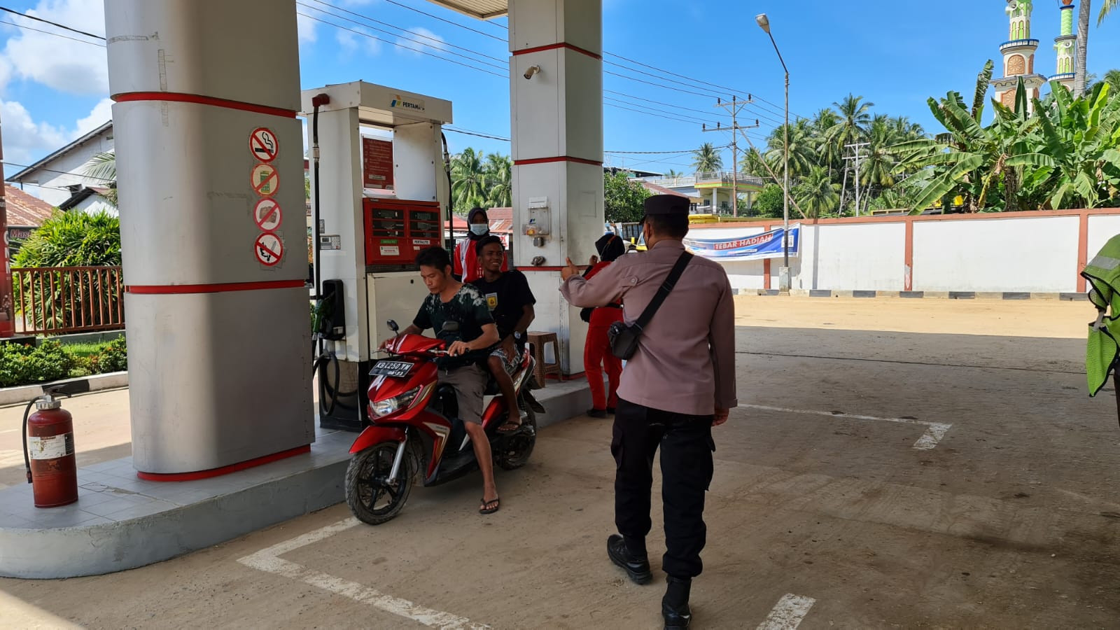 Briptu Andre Juga memberikan himbauan protokol kesehatan terhadap petugas SPBU dan masyarakat yg mengantri untuk selalu menerapkan protokol kesehatan dan selalu memakai masker di saat beraktifitas di luar rumah.