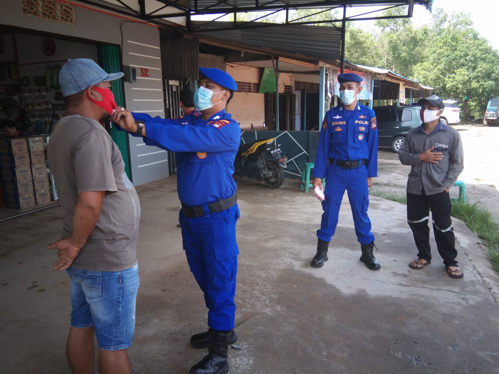 Selain membagikan masker Personel juga menyampaikan himbauan untuk selalu melaksanakan protokol kesehatan 5M, dengan wajib memakai masker, mencuci tangan, menjaga jarak, mengurangi mobilitas dan menjauhi kerumunan,