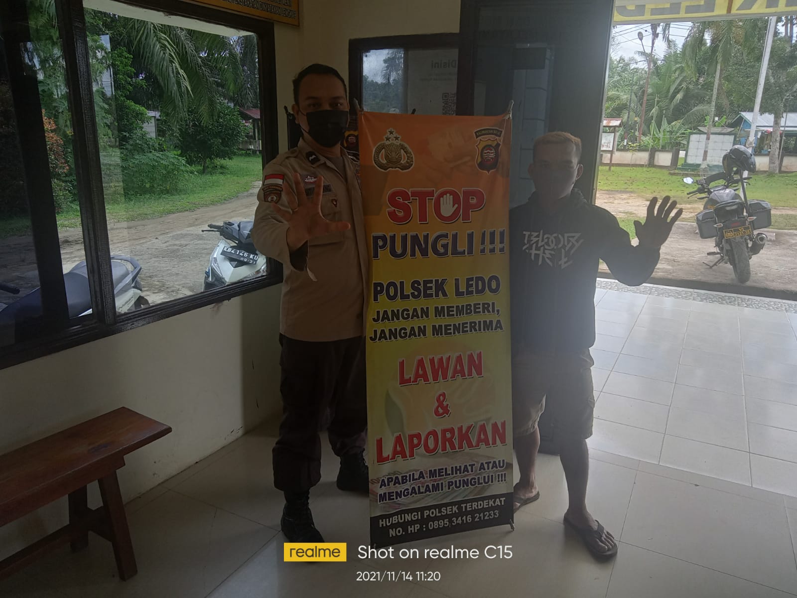 Kapolsek Ledo IPTU Asep Maulana mengatakan sebagaimana dalam Peraturan Presiden tersebut menegaskan dilarang melakukan praktek Pungli dalam bentuk apapun baik berupa penyuapan, gratifikasi, meminta imbalan kepada pihak manapun secara ilegal / dengan paksaan sehingga dapat merugikan masyarakat.