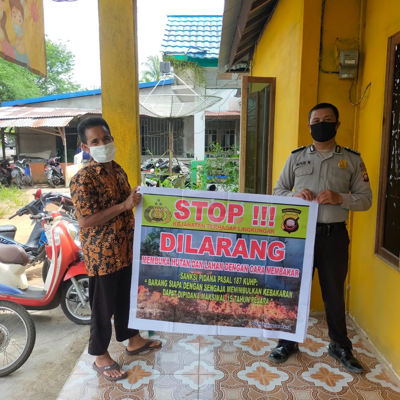 Personil Bhabinkamtibmas Polsek Sungai Raya yaitu Bhabinkamtibmas Desa Sungai Pangkalan 2 Bripka Rauf, melaksanakan kegiatan himbauan Karhutla di Desa binaannya.