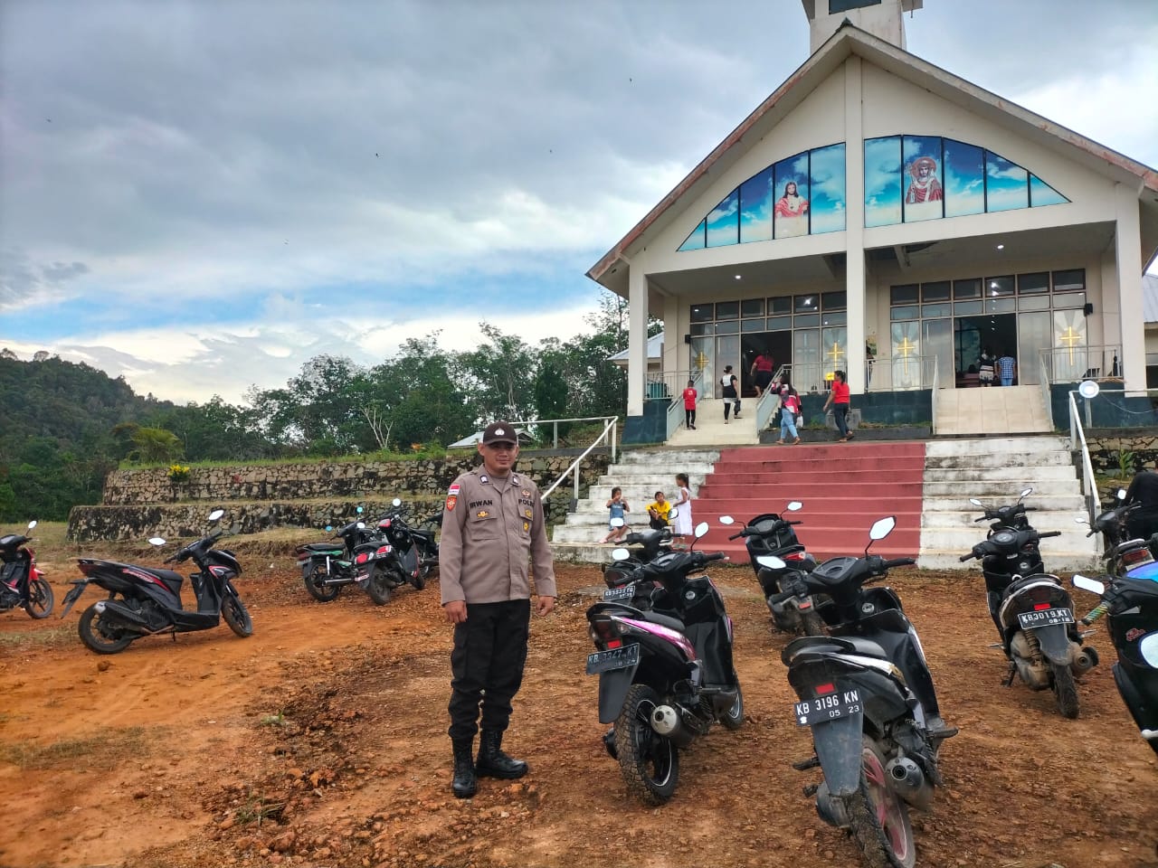 Untuk meningkatkan rasa aman di tengah masyarakat,Piket regu II Polsek Capkala melaksanakan pengamanan (Pam) ibadah di gereja St.Grogerius Agung Capkala Kec. Capkala,Minggu (24/09/2023).
