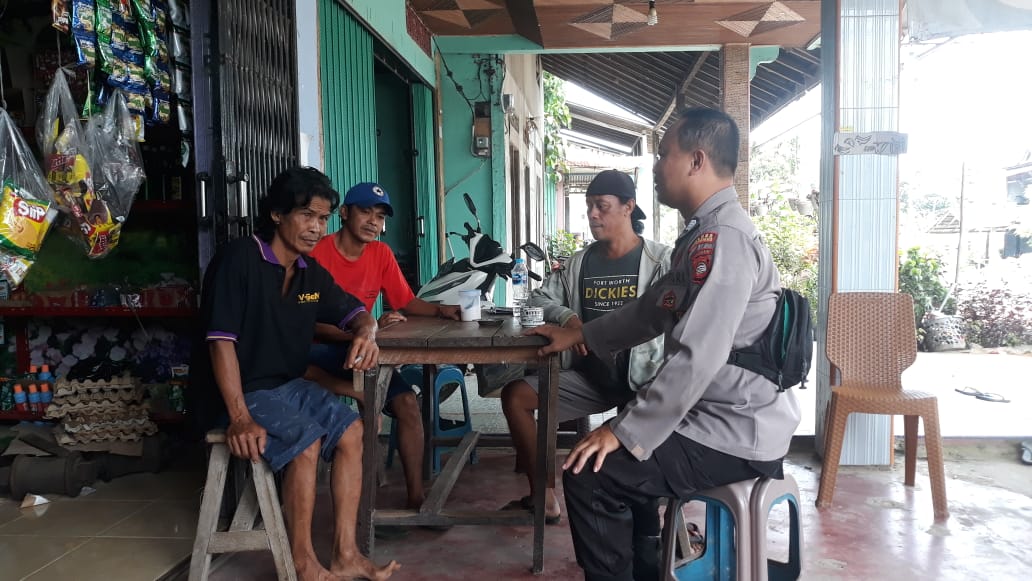 Terkait Covid-19, Ps. Kanit Binmas Bripka Nanang. S menyambangi masyarakat di warung kopi yang terletak di pasar Desa Mandor Kec. Capkala Kab. Bengkayang