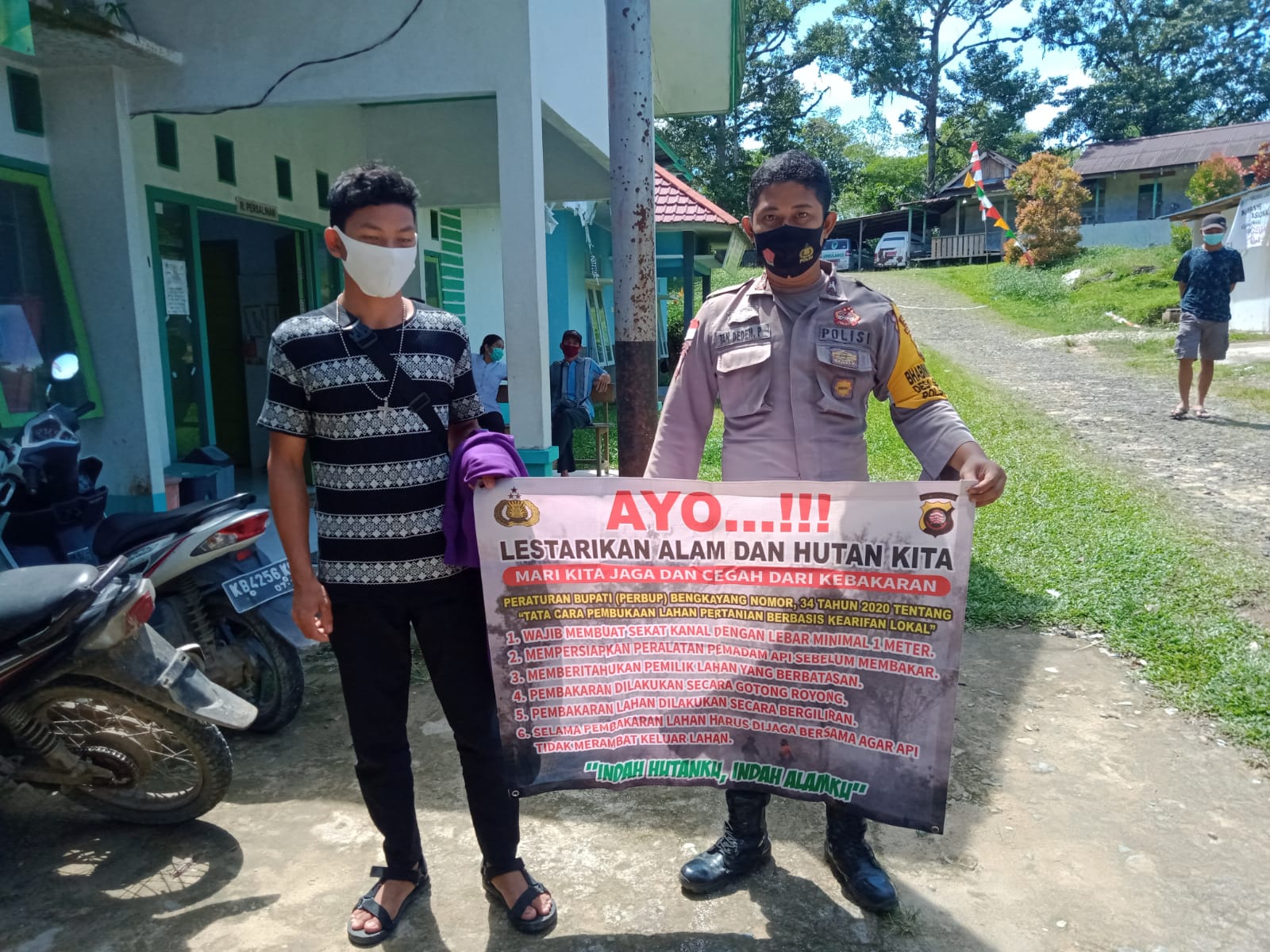 Adalah Bhabinkamtibmas Polsek Ledo untuk Desa Semangat Briptu Tan Deden yang kali ini terlihat sedang melakukan sosialisasi peraturan dan tata cara pembukaan lahan pertanian kepada masyarakat. Peraturan tersebut yaitu Peraturan Bupati Bengkayang Nomor: 34 tahun 2020 tentang Tata Cara Pembukaan Lahan Pertanian Berbasis Kearifan Lokal. Briptu Tan Deden menyebut sosialisasi ini bertujuan agar masyarakat mengetahui dan mengerti isi peraturan tersebut sehingga diharapkan warga dapat berpartisipasi dalam meminimalisir kejadian karhutla khususnya di wilayah hukum Polsek Ledo.