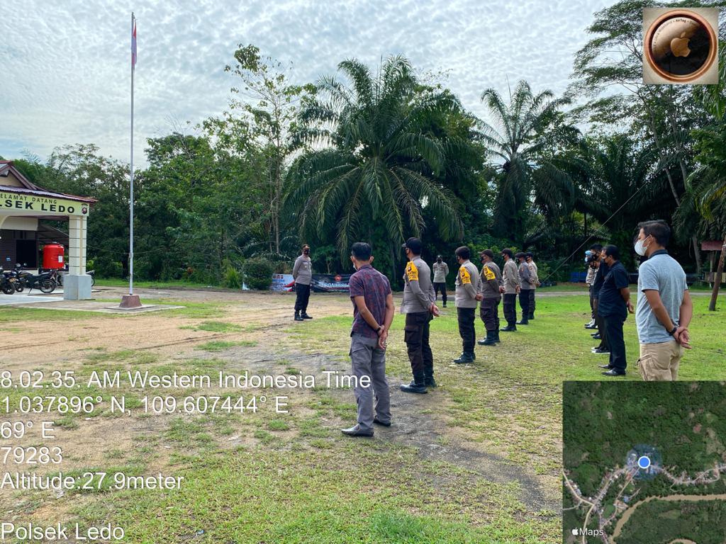 Polres Bengkayang. Pelaksanaan apel pagi dilaksanakan oleh Personil Polsek Ledo dipimpin langsung oleh Kapolsek Ledo Iptu Asep Maulana. (Senin/21/06/2021).