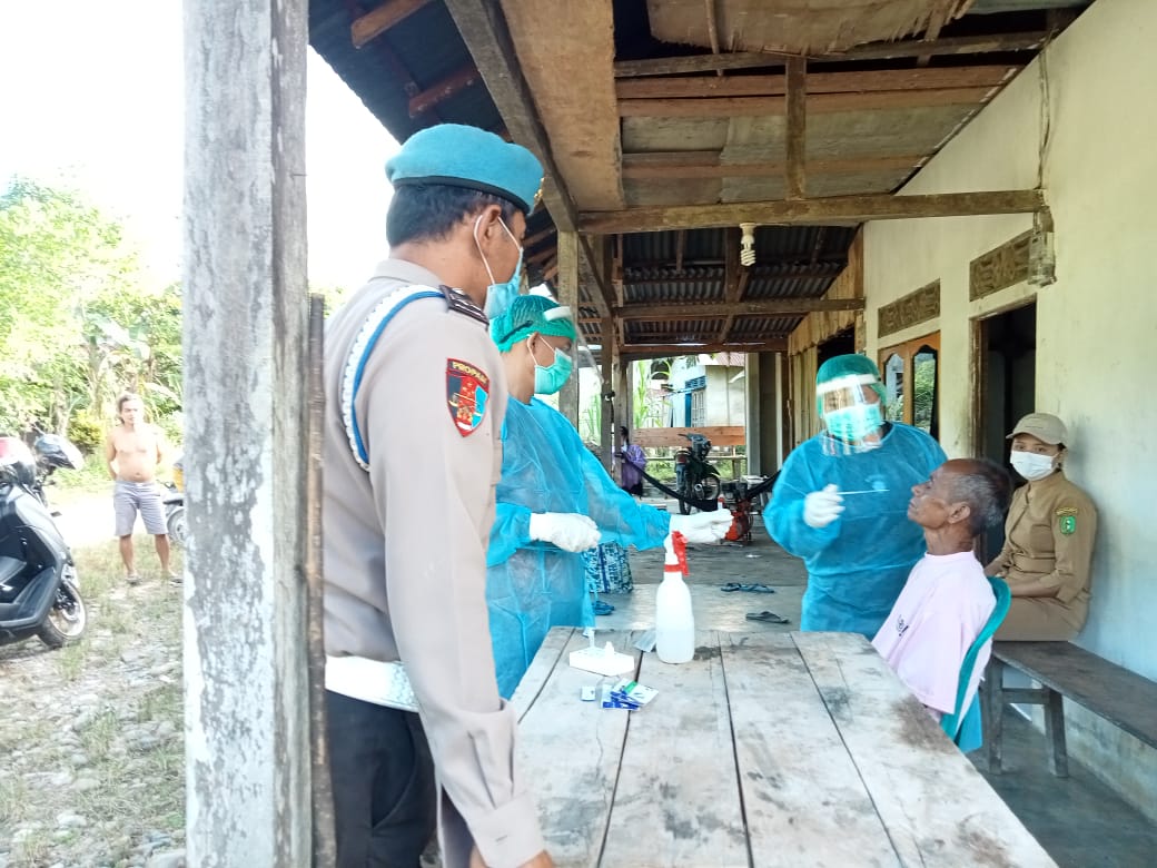 Personil Polsek Lumar hari ini melakukan kegiatan pendampingan pengambilan tes swab PCR TIM TRACER Kec Lumar di Dusun Sebol dan Dusun Madi Desa Tiga Berkat Kec Lumar Kab Bengkayang, Senin (07/06/2021).