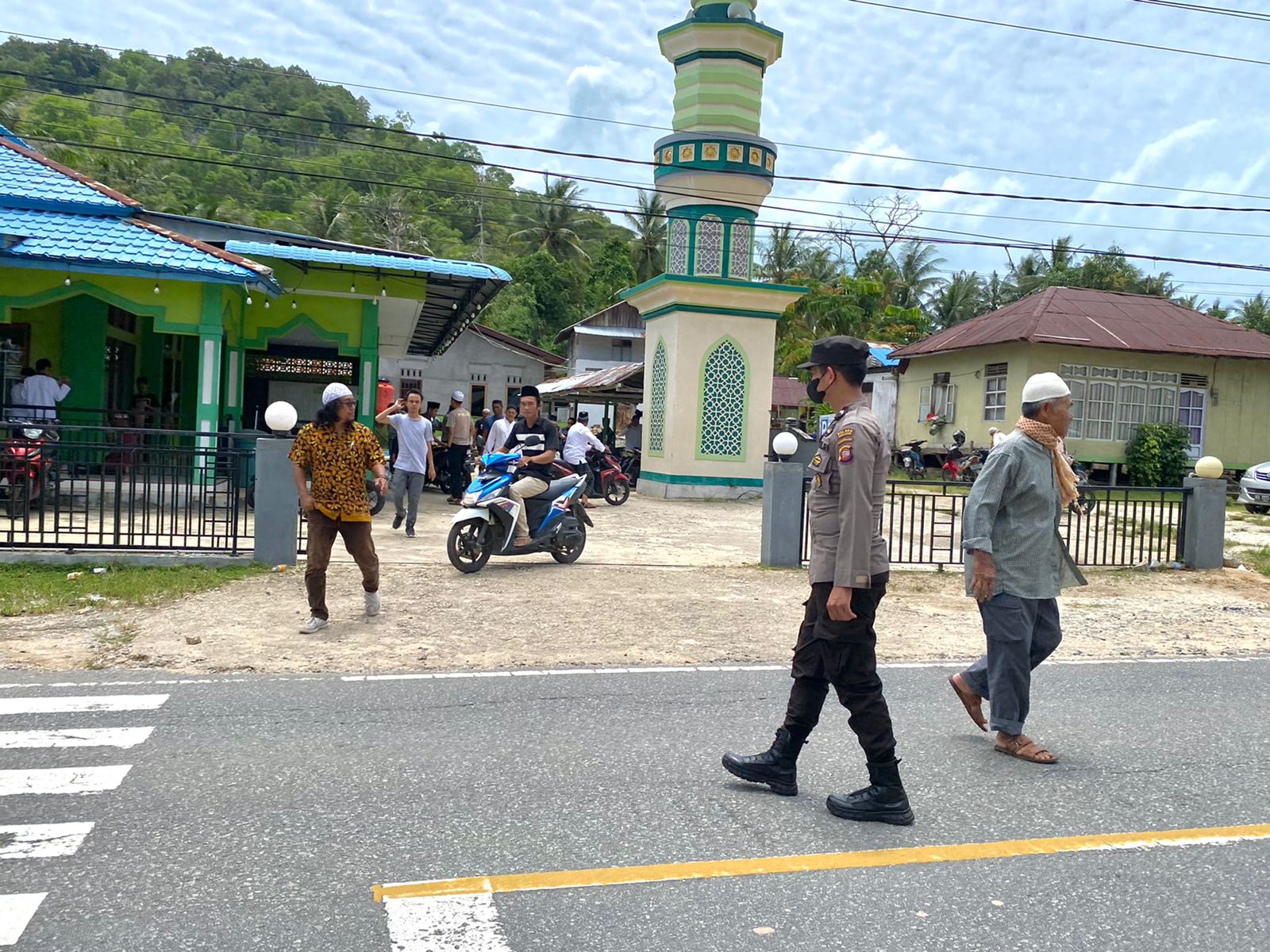 Personil Polsek Sungai Raya Kepulauan Polres Bengkayang Polda Kalbar Laksanakan kegiatan pengaturan lalulintas pada saat warga masyarakat melakukan Ibadah shalat Jum’at di Masjid Baitul Amal Dusun Tanjung Gundul Desa Karimunting,Kec.Sungai Raya Kepulauan,Jum’at siang(08/04/2022).