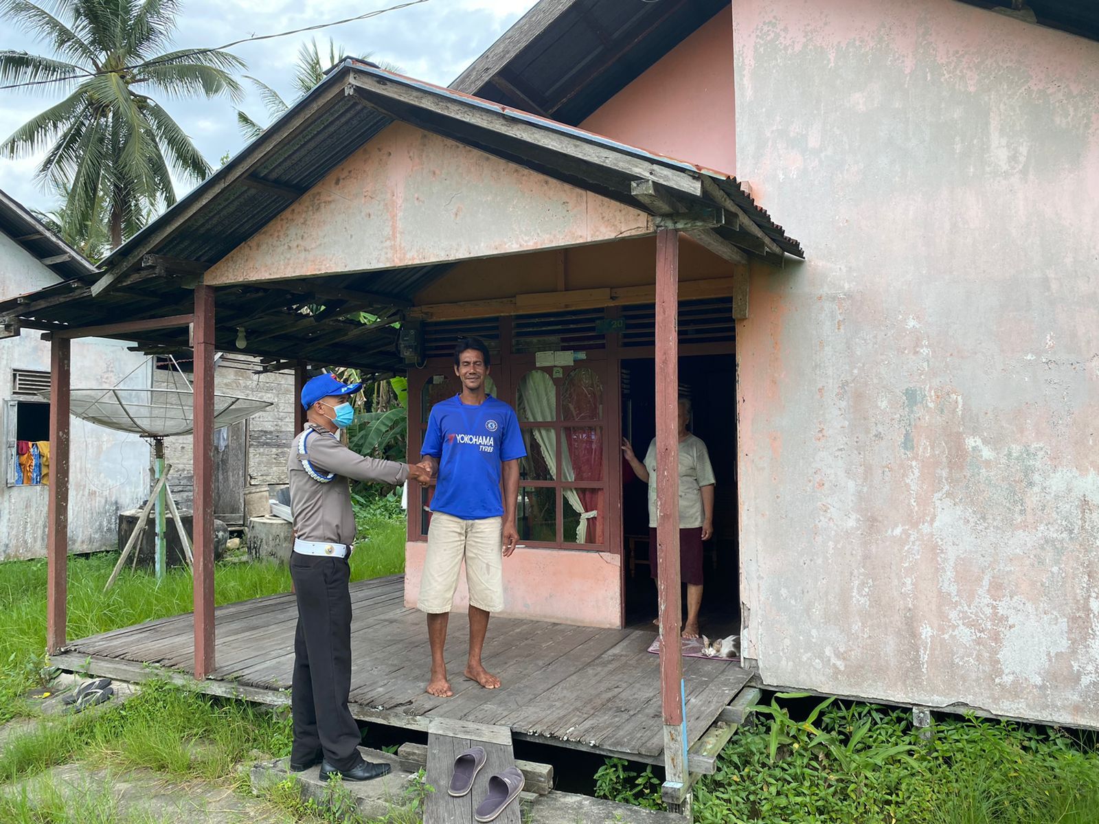 Kanit Provos Polsek Sungai Raya Kepulauan Aipda Dellon mendampingi Tim Vaksinasi Puskesmas Sungai Raya mendatangi rumah warga yang akan divaksin di wilayah Desa Sungai Keran.