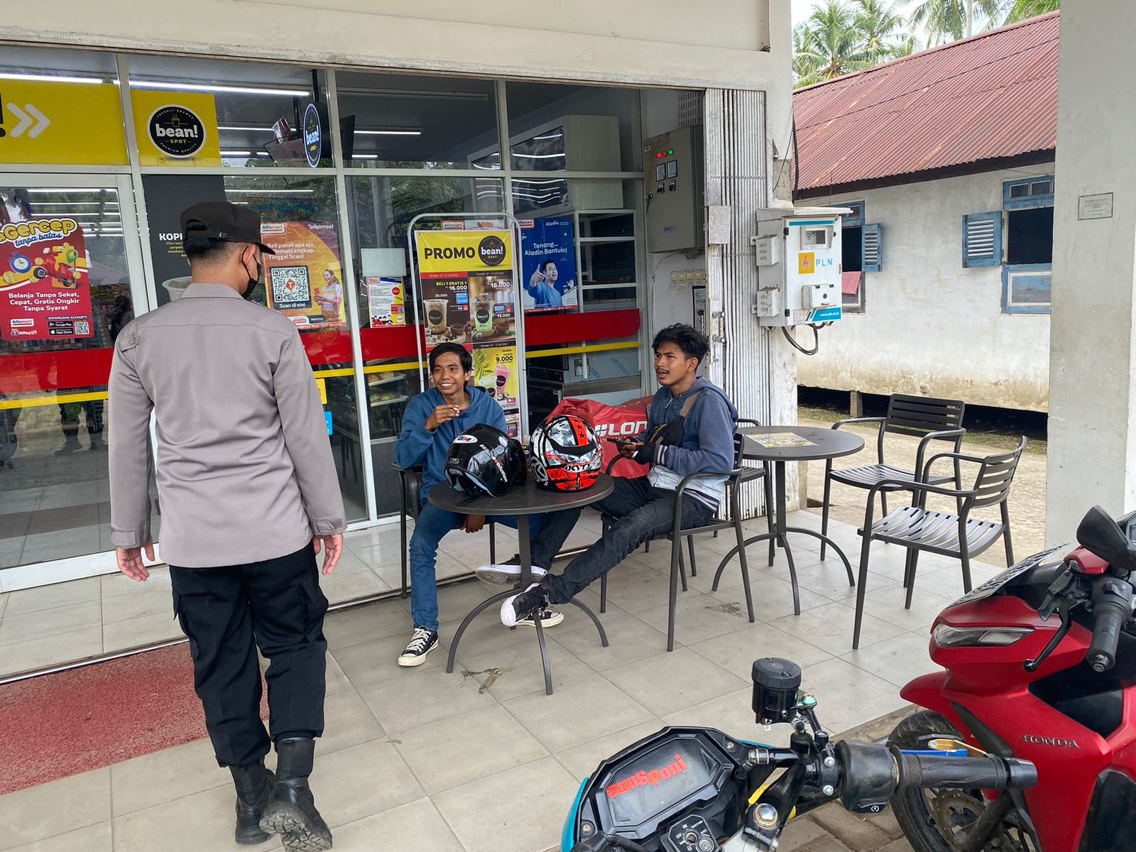 Patroli Dialogis siang hari di Alfamart,Cegah tindak kejahatan dan mewujudkan kondisi kamtibmas yang aman, Anggota Polsek Sungai Raya Kepulauan Polres Bengkayang Polda Kalbar melaksanakan patroli sambang disejumlah Mini Market diwilayah hukum Polres Sungai Raya Kepulauan,Desa Karimunting .Sabtu(16/07/2022).
