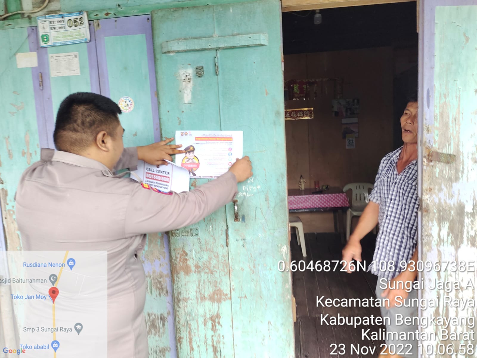Polsek Sungai Raya – Pada hari ini Rabu Tanggl 23 November 2022,Personil Polsek Sungai Raya melaksanakan penempelan Pamflet tentang Layanan Polres Bengkayang.