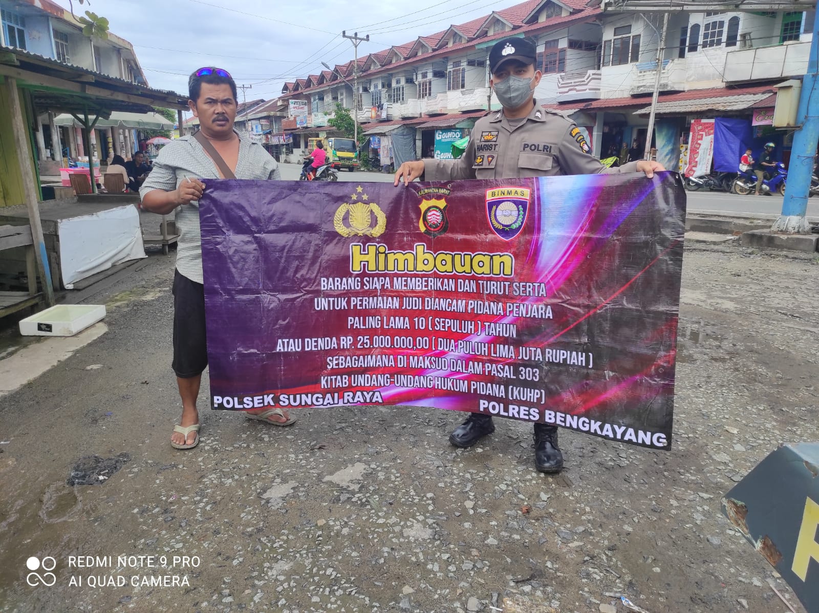 Pada kegiatan tersebut Personil Polsek Sungai Raya melaksanakan kegiatan dengan mengunakan Benner dengan isinya adalah, Himbauan’ Barang siapa memberikan dan turut serta untuk permainan judi diancam pidana penjara paling lama 10 (sepuluh) tahun atau denda 25.000.000,00 (dua puluh lima juta rupiah) sebagaimana dimaksud dalam pasal 303 Kitab undang – undang Hukum Pidana (KUHP)’.