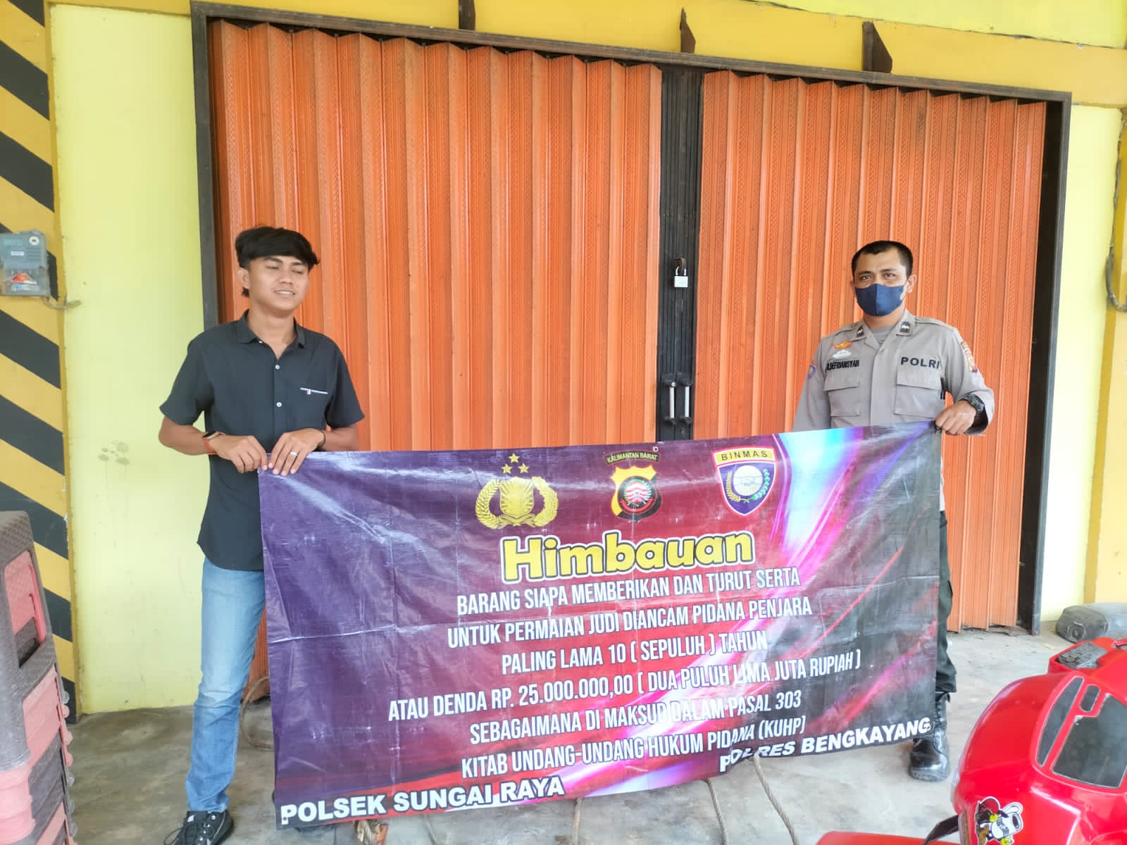 Pada kegiatan tersebut Personil Polsek Sungai Raya melaksanakan kegiatan dengan mengunakan Benner dengan isinya adalah, Himbauan’ Barang siapa memberikan dan turut serta untuk permainan judi diancam pidana penjara paling lama 10 (sepuluh) tahun atau denda 25.000.000,00 (dua puluh lima juta rupiah) sebagaimana dimaksud dalam pasal 303 Kitab undang – undang Hukum Pidana (KUHP)’.