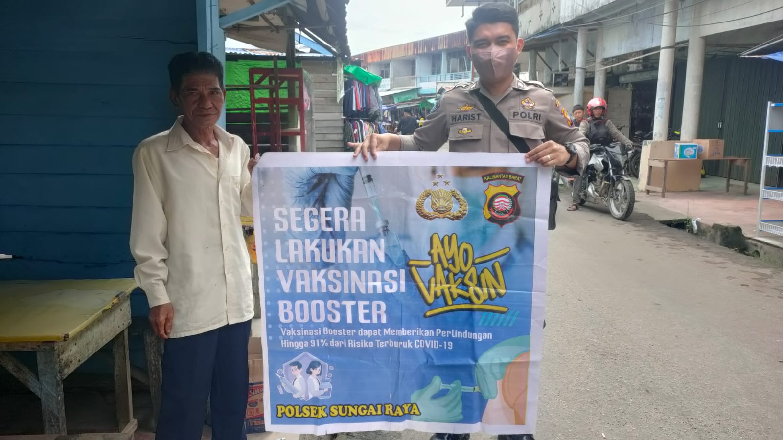 Kegiatan tersebut di laksanakan oleh Personil Polsek Sungai Raya secara rutin dan juga untuk menghimbau mengajak agar masyarakat ikut vaksin boster di Puskesmas Sungai Duri.