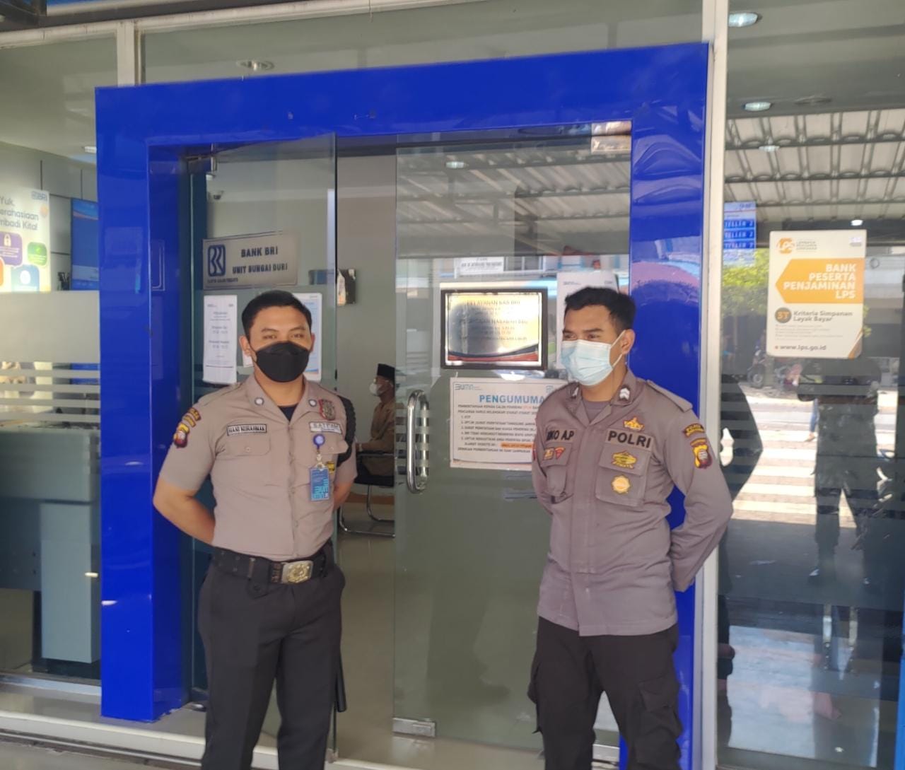 Personil Polsek Sungai Raya Briptu Joko melaksanakan Patroli dialogis dengan sasaran Bank BRI Sungai Duri Wilkum Polsek Sungai Raya Polres Bengkayang.
