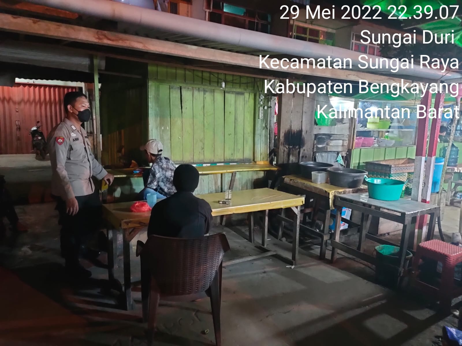 Sasaran patroli tersebut adalah Warung Kopi yang ada diterminal Desa Sungai Duri Kecamatan Sungai Raya Kabupaten Bengkayang, Bripka Nurul Arifin pun memberikan himbauan kepada masyarakat yang nongkrong di Warung Kopi agar bersama-sama menjaga Kamtibmas di lingkungan kita dan juga menjelaskan agar selalu menjaga protokol kesehatan.