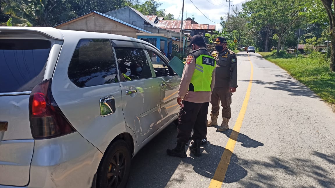 Kegiatan menyekat arus masuknya kendaraan yang berasal dari luar kabupaten Bengkayang terus di laksanakan oleh personil polsek Teriak.