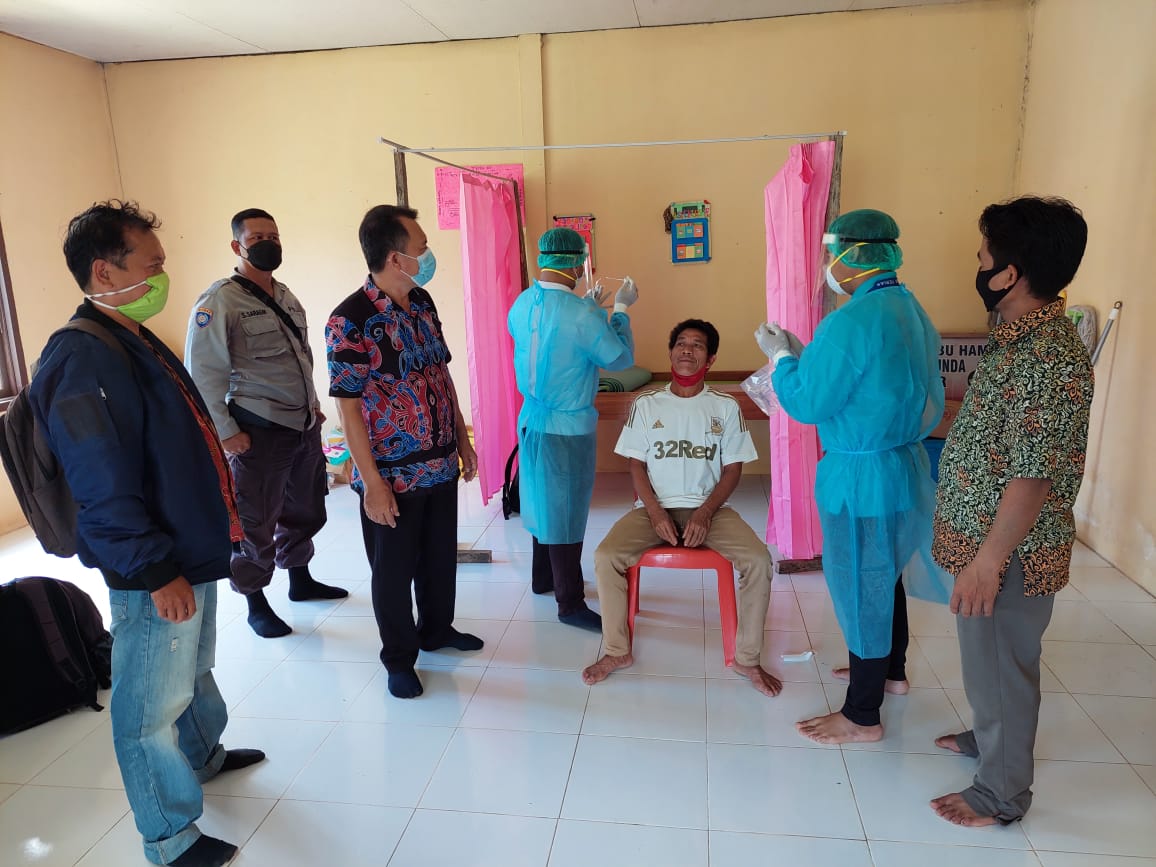 Giat uji kesehatan melalui tes Swab Anti Gen di laksanakan kepada warga yang kontak erat dengan penderita Covid-19 oleh tim kesehatan puskesmas Teriak.