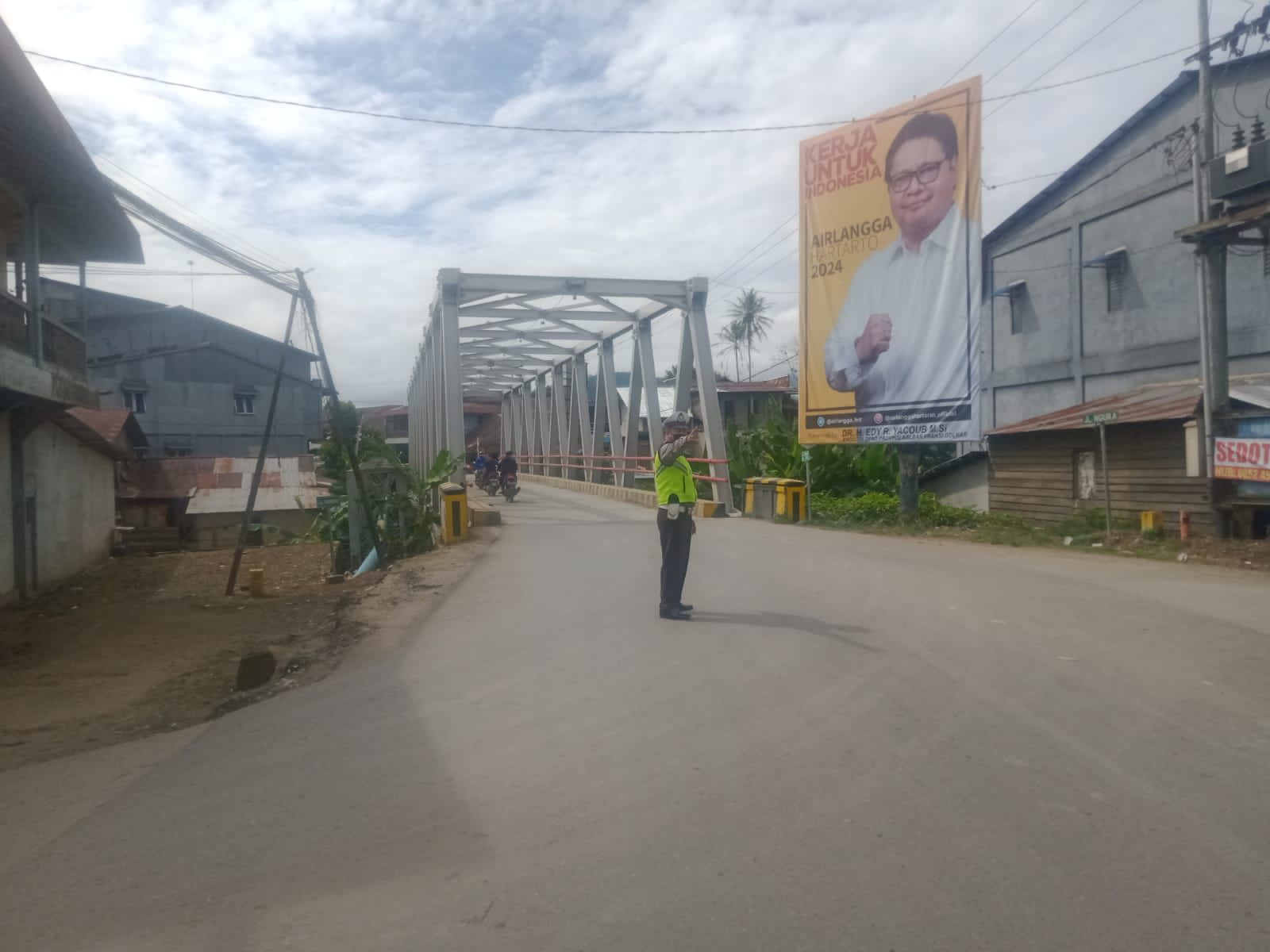 Aipda Wiryanda dan Bripka Ahjanu melaksanakan pengaturan lalu lintas di jalan Tabrani Bengkayang tepatnya di simpang Jembatan Besi Bengkayang dengan tujuan untuk menjaga keselamatan masyarakat yg menyebrang jln dari kecelakaan lalu lintas.
