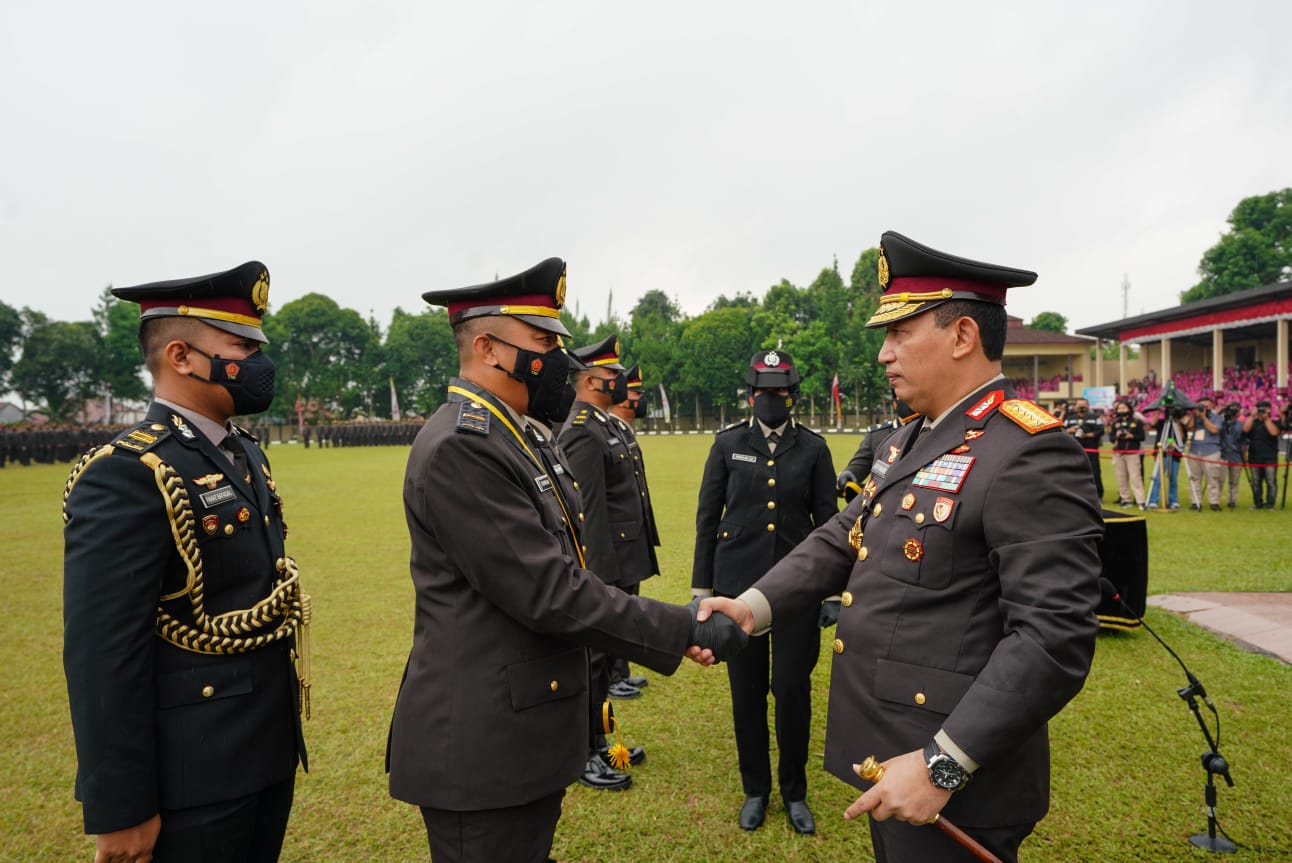 Jawa Barat – Kapolri Jenderal Listyo Sigit Prabowo memimpin upacara penutupan pendidikan dan pelatihan Perwira Polri Sekolah Inspektur Polisi (SIP) Angkatan ke-51, Resimen Satya Intar Adinata Pratapa, di Sukabumi, Jawa Barat, Senin, 3 Oktober 2022.
