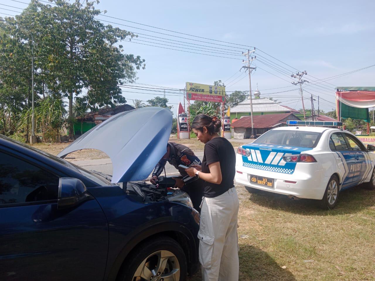 Saat melaksanakan patroli rutin, Bripda Galang dan Bripda Risky Vallen menemukan seorang pengendara yang mobilnya mengalami mogok akibat overheat. Tanpa ragu, petugas segera menghentikan mobilnya dan menghampiri pengendara untuk menanyakan permasalahan yang dialami.