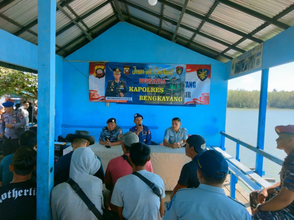 Bengkayang, Kalbar – Iptu Lanjar, Kasat Polair Polres Bengkayang melaksanakan kegiatan Jumat curhat di Dermaga Penyebrangan Teluk Suak pada Jumat (03/11/2023), pagi.