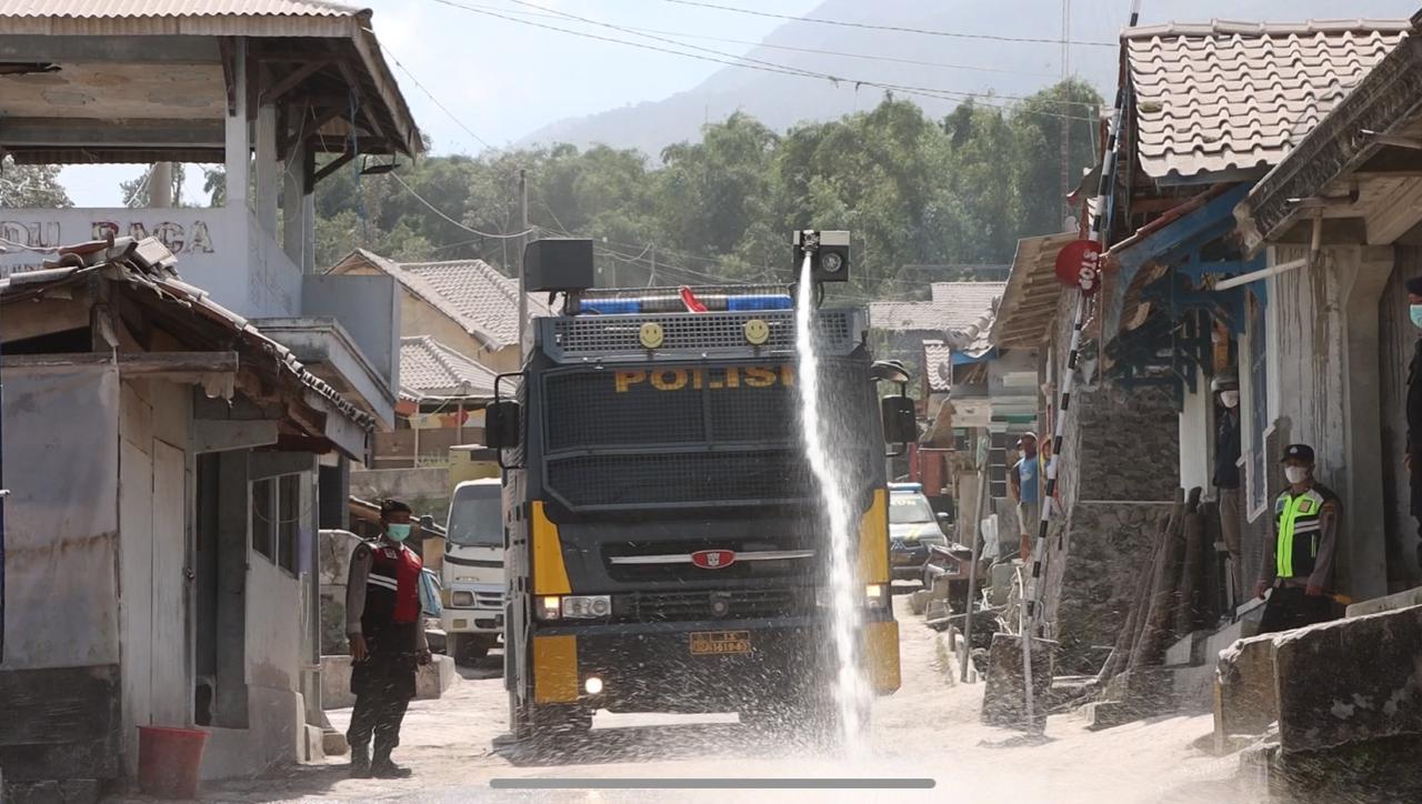 “Kita hadir membantu masyarakat yang terdampak abu vulkanik karena kita melihat masyarakat membersihkan jalan dengan cara manual sehingga kami Polri, TNI juga para relawan membantunya menggunakan peralatan water canon dan PDAM juga Damkar untuk mempercepat proses pembersihan. Apabila tidak segera dibersihkan , cukup membahayakan masyarakat yang melintas karena selain berdebu juga cukup licin apabila tidak dibersihkan “, imbuhnya.