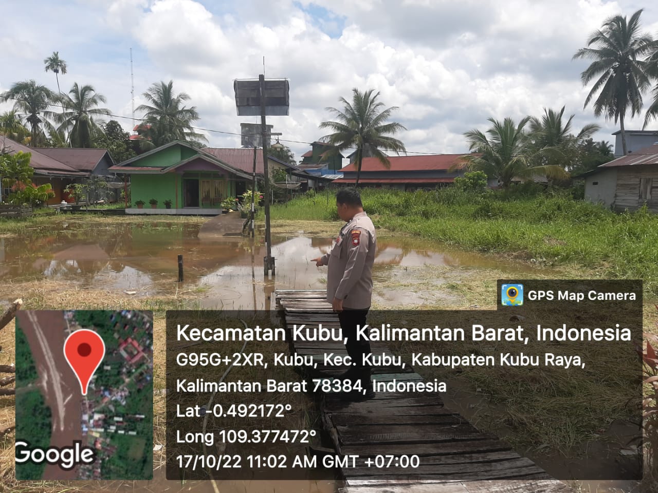 Kubu Raya, Kalbar – Personil Polsek Kubu kembali melakukan monitoring di wilayah pemukiman warga terdampak banjir Rob, hal ini dilakukan karena derasnya hujan pada Minggu tanggal 16/10/22 pada jam 22.00 WIB malam.