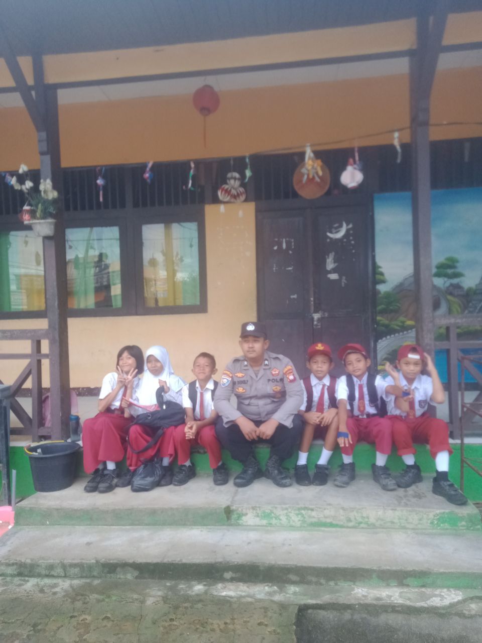 Tribaratanews.polri.kalbar.go.id – Bhabinkamtibmas Polsek Ledo Polres Bengkayang Briptu Tan Deden Purnomo datangi siswa Sekolah SDN 02 Ledo bentuk kedekatannya dengan siswa sebagai bentuk Polisi Sahabat Anak Kamis (30/11/2023).
