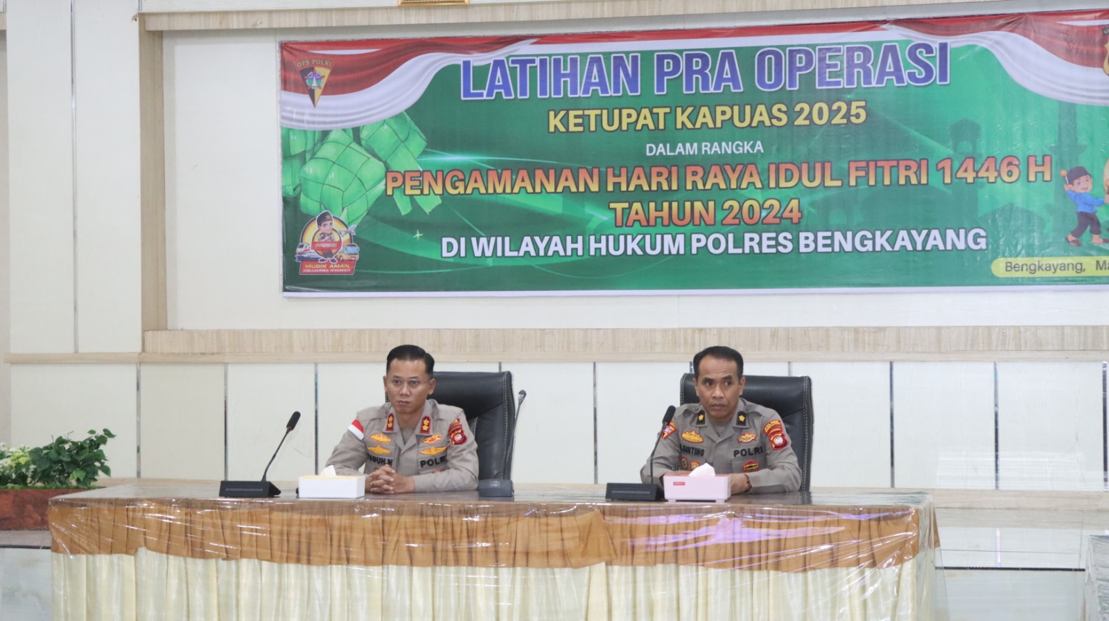 Bengkayang, Kalbar – Guna memastikan keamanan dan kelancaran perayaan Hari Raya Idul Fitri 1446 H, Polda Kalbar menggelar Latihan Pra Operasi (Lat Praops) Ketupat Kapuas 2025 melalui Zoom Meeting, bertempat di Aula Tunggal Panaluan Polres Bengkayang, Senin (24/3/2025). Kegiatan ini dipimpin langsung oleh Wakapolda Kalbar, Brigjen Pol. Roma Hutajulu, S.I.K., M.Si., serta diikuti oleh para pejabat utama Polda Kalbar dan jajaran Polres se-Kalimantan Barat.